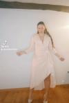 レビュー: カスケード フリル レイヤード ポリエステル Vネック ロングスリーブ ミディワンピース