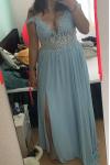 レビュー: イブニングドレス 半袖 Aライン Vネック パーティードレス シフォン ファスナー ベビーブルー ロング丈 フォーマルドレス 演奏会ドレス 結婚式 二次会ドレス 発表会 ウェディング