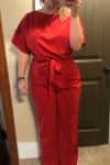 レビュー: ディープ ブルー ジャンプスーツ レースアップ ポリエステル ノット ナチュラル ウエスト パンツ アウトフィット