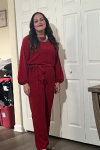 レビュー: ディープ ブルー ジャンプスーツ レースアップ ポリエステル ノット ナチュラル ウエスト パンツ アウトフィット