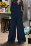 レビュー: ディープ ブルー ノースリーブ ボタン コンバーチブル デニム ワイド サマー プレイスーツ