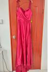 レビュー: イブニングドレスA ラインスクエアネック弾性織サテントレインスプリットフロント社交パーティードレス