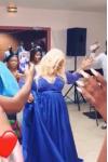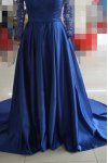 レビュー: イブニングドレス Vネック ボールガウンライン ロイヤルブルー パーティードレス サテン ファスナー トレーン付き 七分袖 30cm フォーマルドレス 演奏会ドレス 結婚式 二次会ドレス 発表会 レース ウェディング