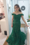 レビュー: イブニングドレス ノースリーブ マーメイドライン オフショルダー パーティードレス 弾性シルクライクサテン レースアップ ダークグリーン トレーン付き フォーマルドレス 演奏会ドレス 結婚式 二次会ドレス 発表会 ウェディング