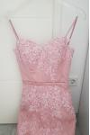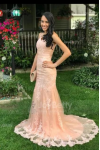レビュー: イブニングドレス Vネック マーメイドライン ピーチ パーティードレス サテン ファスナー トレーン付き ノースリーブ 30cm フォーマルドレス 演奏会ドレス 結婚式 二次会ドレス 発表会 レース ウェディング