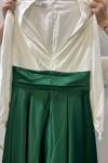 レビュー: イブニングドレス Aライン Vネック フロアレングス 長袖 ジッパー プリーツ サテン生地 フォーマルパーティードレス