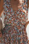 レビュー: マキシワンピース 花柄 ブリックレッド ノースリーブ スプリット Vネック レディースワンピース