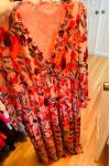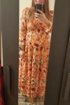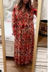 レビュー: 花柄ドレス Vネック ティアードフリルトリム 長袖 ボヘミアン マキシドレス