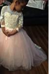 レビュー: 結婚式 子供ドレス フラワーガール 子供用フォーマルドレス ラウンドネック ウェディングパーティードレス チュール 長袖 ソフトピンク ボールガウンライン キッズ フォーマル 発表会 トレーン付き ウェディング くるみボタン レース