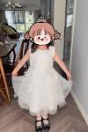レビュー: フラワーガールドレスホワイトジュエルネックポリエステルコットンノースリーブ膝丈Aライン刺繍フォーマルキッズページェントドレス