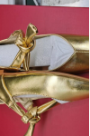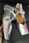 レビュー: ゴールド バレエ フラット スクエア トゥ メタリック ノット ディテール フラットシューズ
