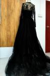 レビュー: ゴシックブラックのウェディングドレス A ラインジュエルネック長袖レース床の長さのブライダルドレス無料カスタマイズ