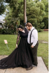 レビュー: ゴシックブラックのウェディングドレス A ライン長袖背中の開いたレースアップトレーンブライダルガウン無料カスタマイズ
