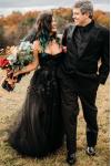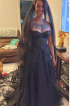 レビュー: ゴシックブラックのウェディングドレス A ラインノースリーブレースアップバックレストレーンブライダルドレス無料カスタマイズ