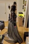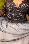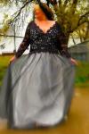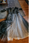 レビュー: ゴシック ブラック ウェディング ドレス A ライン V ネック ロング スリーブ チュール レース フロアレングス ブライダル ガウン 無料カスタマイズ