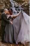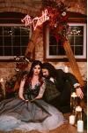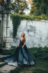 レビュー: ゴシックブラックのウェディングドレス A ライン V ネックノースリーブ夜会服チュールレースの花嫁衣装無料カスタマイズ