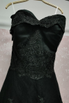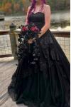 レビュー: ゴシックブラックのウェディングドレス サテン生地プリンセス シルエット ノースリーブナチュラル ウエストビーズコートトレインブライダルガウン