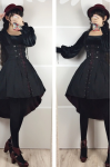 レビュー: ゴスロリドレス 黒いロリータ ゴシックロリータ コルセットジャンパースカート お茶会 学園祭 文化祭 イベント 紺