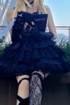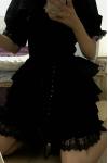 レビュー: ゴシックロリータサスペンダードレスとカバーアップツーピーススーツレーストリム半袖レイヤードパフィーショートドレス