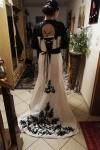 レビュー: ゴシックウェディングドレスマーメイドノースリーブチェーンタフタコートトレインゴシックブライダルドレス