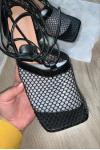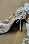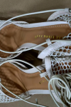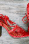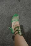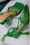 レビュー: グリーン メッシュヒール レースアップ スティレットヒール サンダル スクエアトゥ