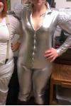 I love this whole design!!This silver shiny metallic catsuit is just what I was looking for!