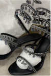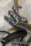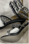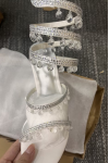レビュー: ハイヒールサンダル レディース オープントゥ ラインストーン レースアップ プロムシューズ