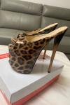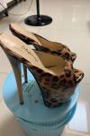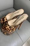 レビュー: ハイヒールのセクシーなサンダル、ヒョウ柄レザーのピープトゥのセクシーなミュール