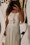 レビュー: マキシワンピース ホワイト バックレス 無地 ポリエステル ノースリーブ シック&モダン スプリット ストラップ