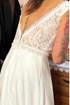 レビュー: ボヘミアンウェディングドレス アイボリー レース Aライン トレーン付き バックレス ノースリーブ Vネック ブライダルドレス 自由なカスタマイズ