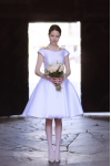 レビュー: ショートウェディングドレス 大きいサイズウェディングドレス サテン 前撮り アイボリー 短いブライダルドレス Aライン ひざ丈 ミニドレス 特別なネックライン 半袖 結婚写真 フォトウェディング ウェディングドレス