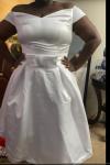 D****nフィット感:ちょうどいいサイズThis dress was perfection! A life saver! It fit perfectly right out of the bag! It did not even need to be steamed!!! I just hung it up and gave it a spritz of Downey since we had it in a vacuum bag for traveling. I needed a cheap dress that would travel for our whirl wind wedding tour (we had 2 small ceremonies due to scattered family) so it had to travel, and be affordable for the money we were spending elsewhere. I loved loooved the 1950s vintage cut. It was flattering in all of the right places. And I was cool and comfy! I wore a strapless bra with a low back. I took off the flower for the second ceremony. The delivery took a bit longer than expected, but Nancy communicated very well. I had faith that it would all work out. And it did. Beautiful. Loved. It may have been a little loose in the arms due to my last min weight loss. But not enough for me to alter it. I do not understand paying thousands for a dress you wear once! Or twice in my case ;) Congrats on the wonderful biz Nancy. You are very talented! Thank YOU! This was the easiest part of our wedding!! I am adding too many pics, because I was a crazy person stalking pictures when I was dress shopping. The gals here really helped me! Brides...order this dresssssss!!2018/7/13