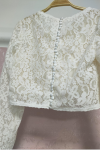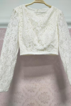 レビュー: アイボリー ツーピース ウェディングドレス レース レース ジュエルネック Aライン トレーン付き 長袖 ブライダルドレス