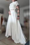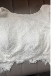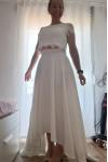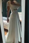 レビュー: アイボリーのツーピースウェディングドレス、ストレッチクレープレース、ジュエルネック、Aラインスイープ、ショートスリーブ、ブライダルドレス、無料カスタマイズ