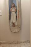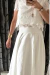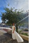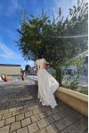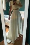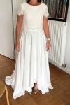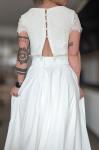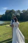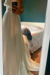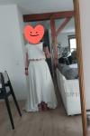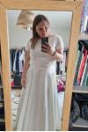 a****2Couleur:IvoireTaille:EU 36フィット感:ちょうどいいサイズRavie de la robe, elle a fait sensation ! Et je me suis sentie tellement bien dedans! Concernant la taille, j'ai préféré prendre un 36 et la faire reprendre par une couturière pour qu'elle tombe comme je le voulais. Je suis entre le 34 et 36, la taille de la jupe était parfaite mais j'ai fait retirer 20 cm sur l'avant (je mesure 1m57) et j'ai gardé la longueur de la traîne. Par contre le haut était pile poil, il fallait pas plus petit. Et vue la longueur et la forme, j'ai dû trouver une brassière avec de fines bretelles croisées pour ne pas qu'on voit ma poitrine. Petit soucis sur une manche qui était montée de travers, j'ai dû la faire reprendre sinon ça faisait une pointe pas très jolie. Dommage ça m'a rajouté une cinquantaine d'euros à les retouches et je n'ai eu en compensation qu'un bon pour des frais d'envoi offerts. Mais sinon pour le prix, vraiment contente le résultat était magnifique !2025/9/10