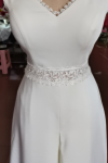 レビュー: アイボリージャンプスーツVネック足首丈ノースリーブストレッチクレープジッパーカットアウトジャンプスーツ