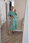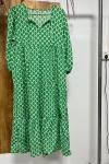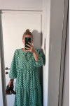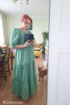 レビュー: ジュエルネック マキシドレス 7分袖 カジュアル フローラルプリント ロングドレス