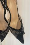 レビュー: レース パーティーシューズ ピープトゥ ブラック ラインストーン スリングバック ハイヒール パーティーシューズ