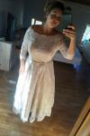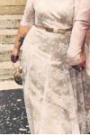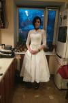 C****lフィット感:ちょうどいいサイズこのドレスは絶対に素晴らしかった。私は一週間前に結婚した義理の姉よりも多くの褒め言葉をもらいました、そしてそれは彼女のウェディングドレスで12K近くを吹きました。フィッティングはほぼ完璧でした-スリーブが少し大きすぎて(私はとても小柄なので、それを期待していました)、地元の針子に調整してもらいました。そのスタイルは、私たちが目指していたヴィンテージの結婚式のテーマにぴったりでした。私はこのドレスを100%お勧めします。