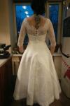 a****eCouleur:ChampagneTaille:Personnaliséeフィット感:ちょうどいいサイズLa confection est parfaite Je me sentais vraiment à l’aise ❤️ Je n’aurais pas pu rêver mieux pour mon mariage sur le thème années 50!