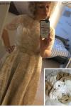 レビュー: レースウェディングドレス 2026 ヴィンテージ バトー シャンパン ハーフスリーブブライダルガウン Aライン バックレス ティーレングス サッシレセプションブライダルドレスMilanoo限定