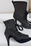 レビュー: ラテンダンスシューズ PUレザー ブラック ピープトゥ ラインストーン ダンスシューズ