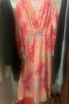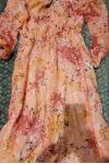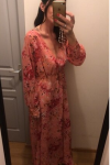 レビュー: マキシドレス 長袖 ピンクプリント Vネック フォークロアドレス