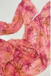 レビュー: マキシドレス 長袖 ピンクプリント Vネック フォークロアドレス