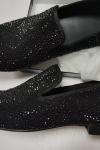 レビュー: メンズ ブラック クリスタル スエード リベット ローファー スリッポン ラインストーン ラウンドトゥ プロム パーティー ウェディングシューズ