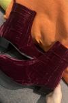 レビュー: メンズブーツ チェルシーブーツ バーガンディ ベルベット ラウンドトゥ アンクルドレスブーツ