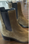 レビュー: メンズブーツ チェルシー オリーブ スエードレザー ポインテッドトゥ アンクル プロムブーツ