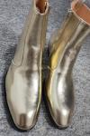レビュー: メンズ チェルシーブーツ ゴールド チャンキーヒール ラウンドトゥ ファッション ハイグロス ショートブーツ