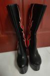 レビュー: 女性のためのミッドカーフブーツ赤炎パターン PU レザーラウンドトゥ幾何学ブーツ