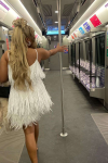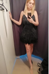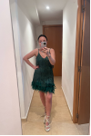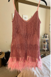 レビュー: ソフトピンクのミニサンドレス スパゲッティストラップ タッセル フェザーヘム バースデーパーティードレス